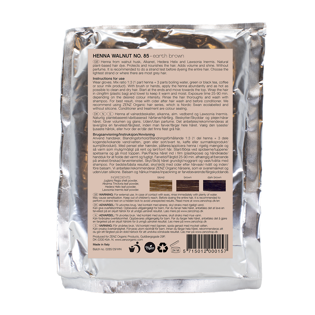 Botanical Henna Hair Colour Walnut no. 85 is een natuurlijke henna haarverf voor alle haartypes. Vooral geschikt voor het creëren van een neutrale bruine kleur in bruin en donkerbruin haar, ook bij grijs haar.